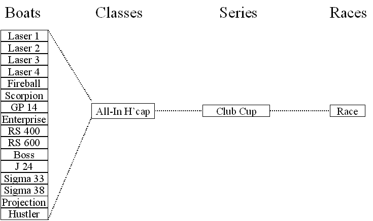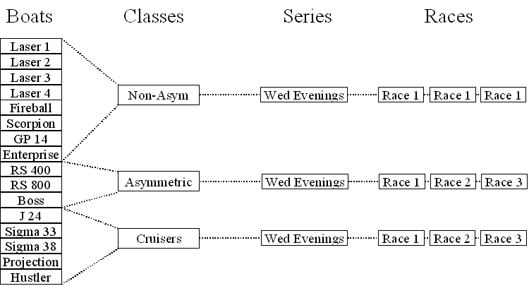 For instance, your club might organise races every Monday evening for the classes shown below.
